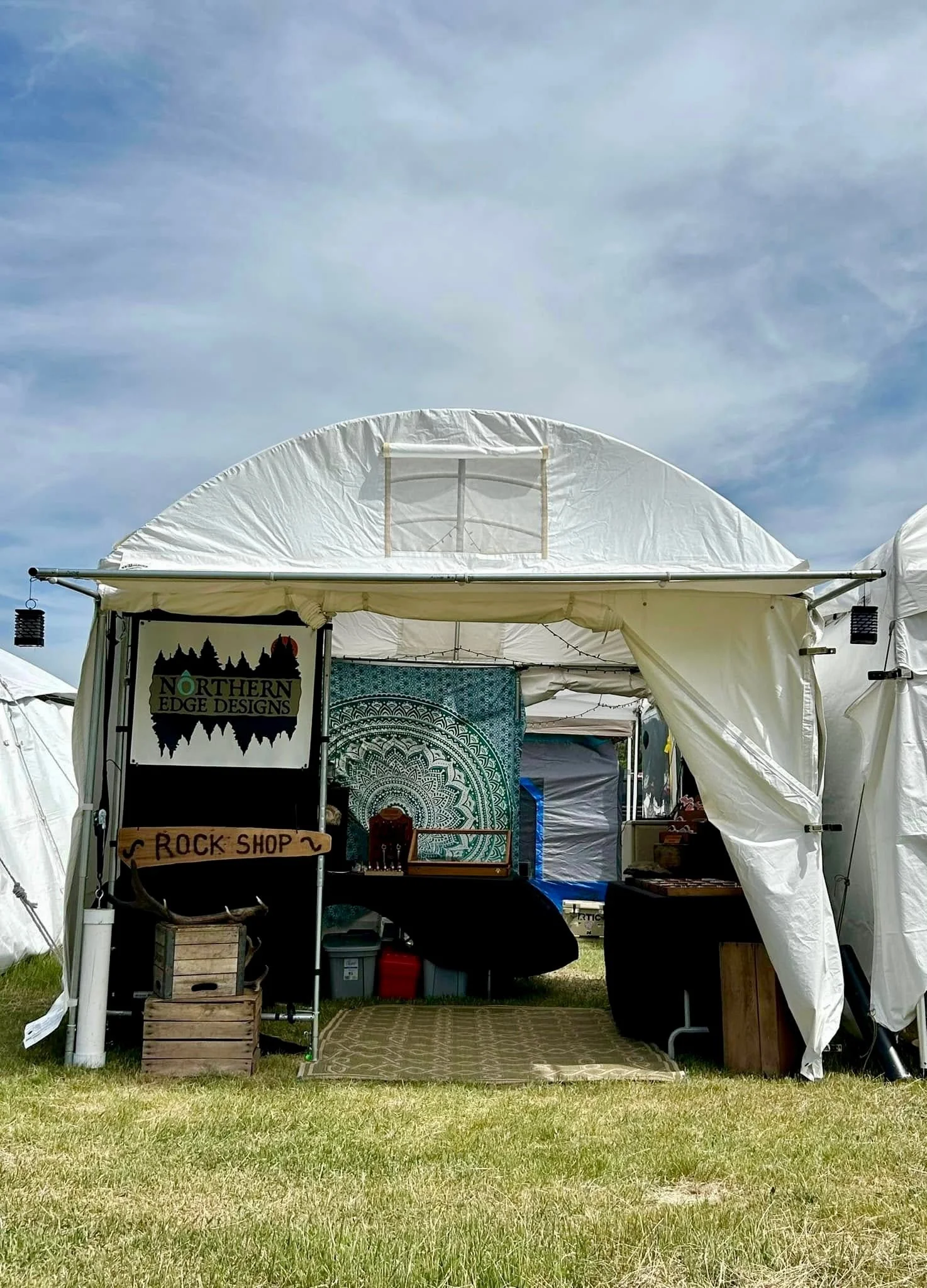 Vendors provide their own easy-up style, straight legged tent from which to sell